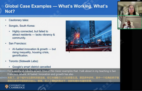 Building on this conceptual framework, Professor Allmendinger turned to real-world examples to illustrate both the promise and the pitfalls of AI-driven urbanism. Cases such as Singapore’s AI-based congestion pricing and Barcelona’s open-data initiatives demonstrate how technology can improve efficiency, transparency, and sustainability. However, he also noted that the same innovations can produce unintended consequences, from data privacy risks to widening social inequality. Cities like San Francisco and Toronto’s Sidewalk Labs Project reveal the paradox of progress, where digital transformation has fueled housing crises, gentrification, and public resistance.